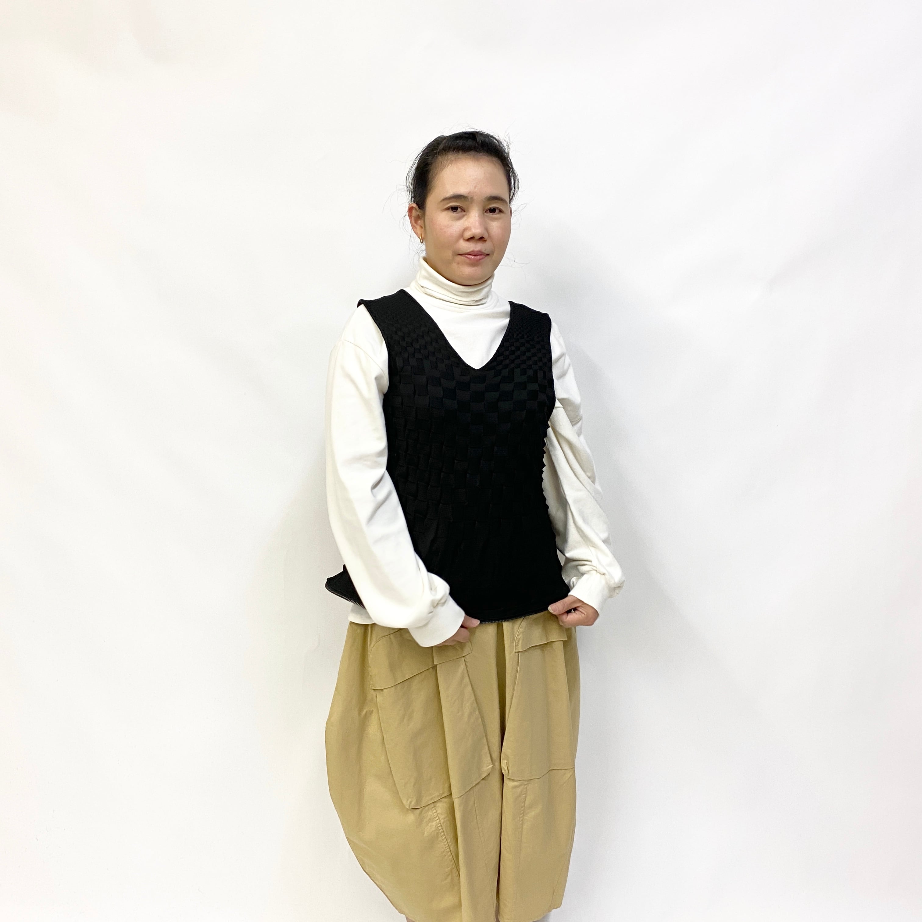 ベストとして着た時もこのファスナーがポイントになり、裾のラインにかわいいシルエットが出ます。