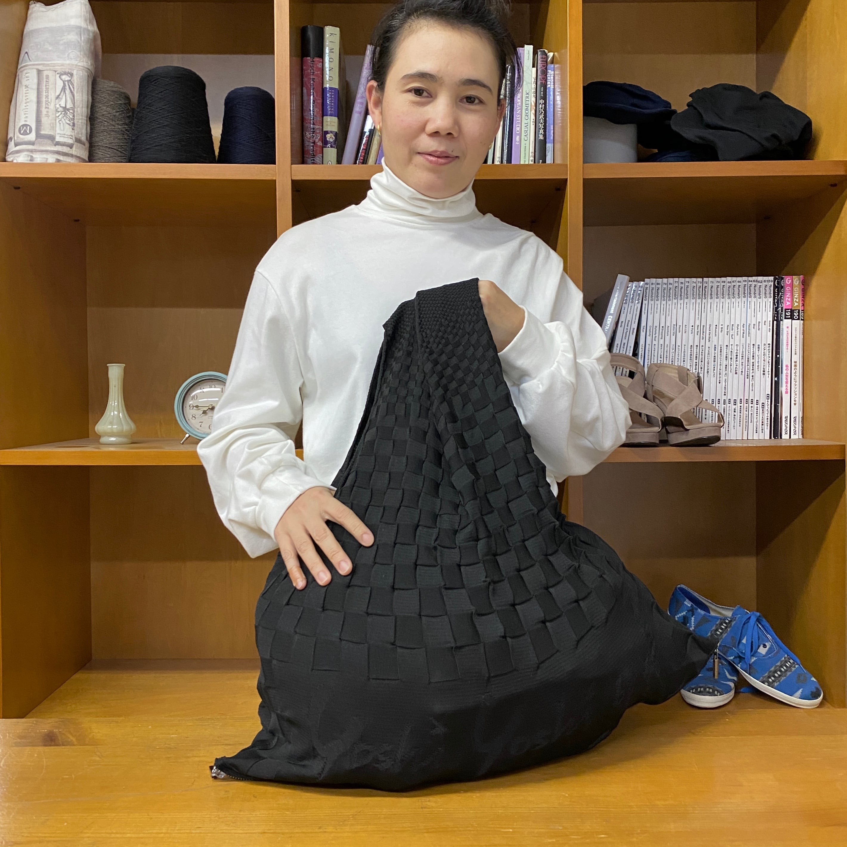 今、エコバッグはいろんな物が出ていますが、この発想とこんなニットアイテム、他にはなかなか無いと思います。