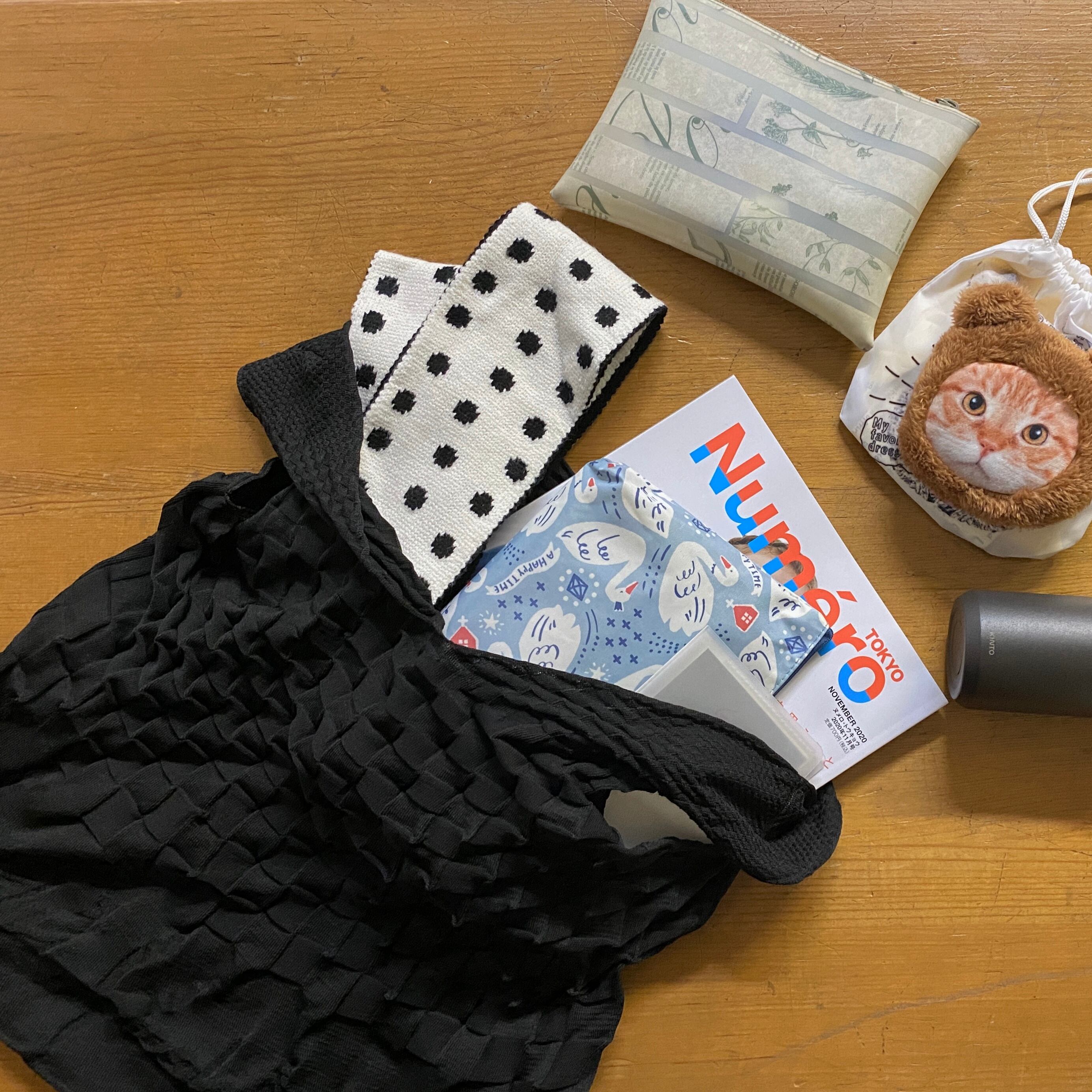 シンプルな黒のトートバッグも、