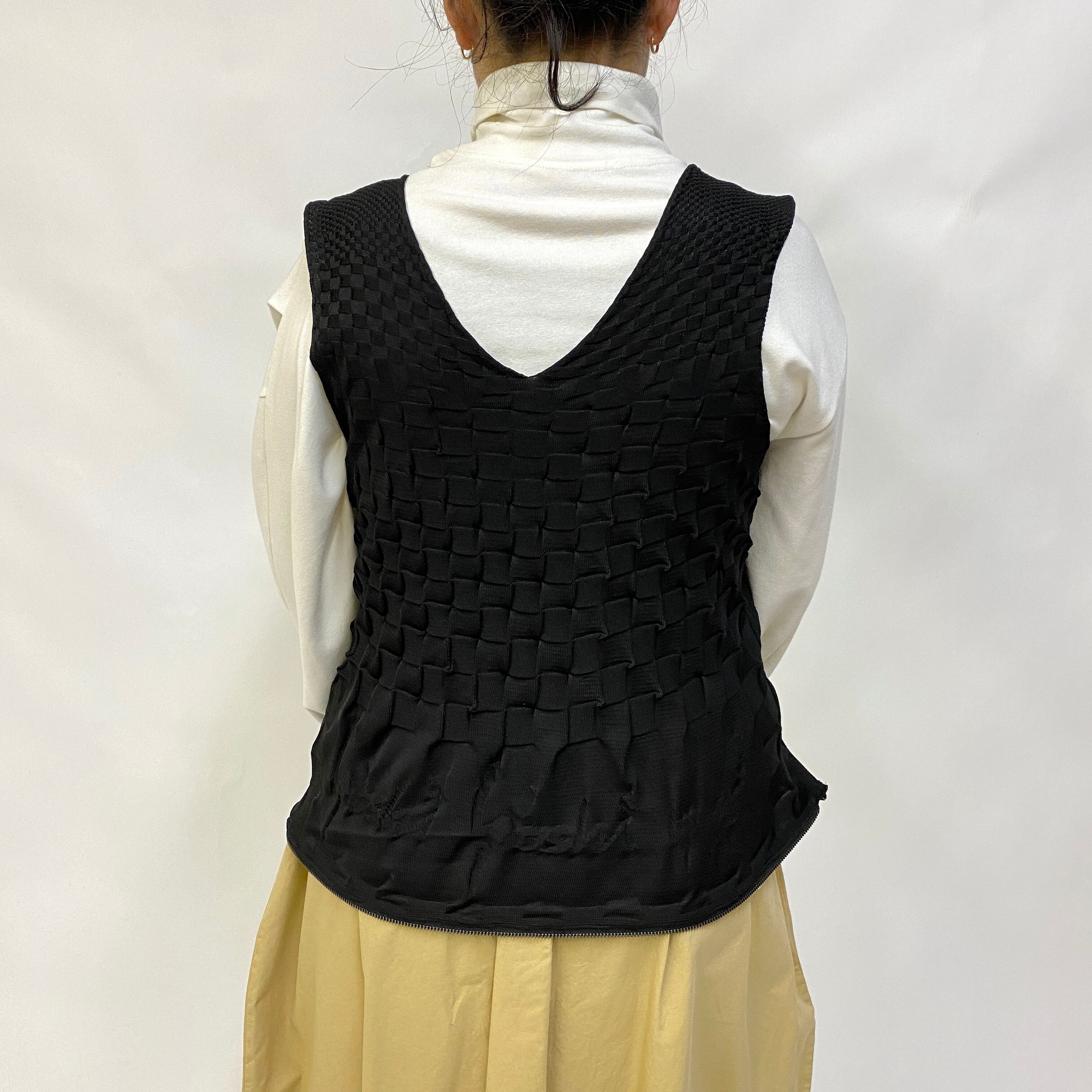 重ね着に便利な黒のベストも