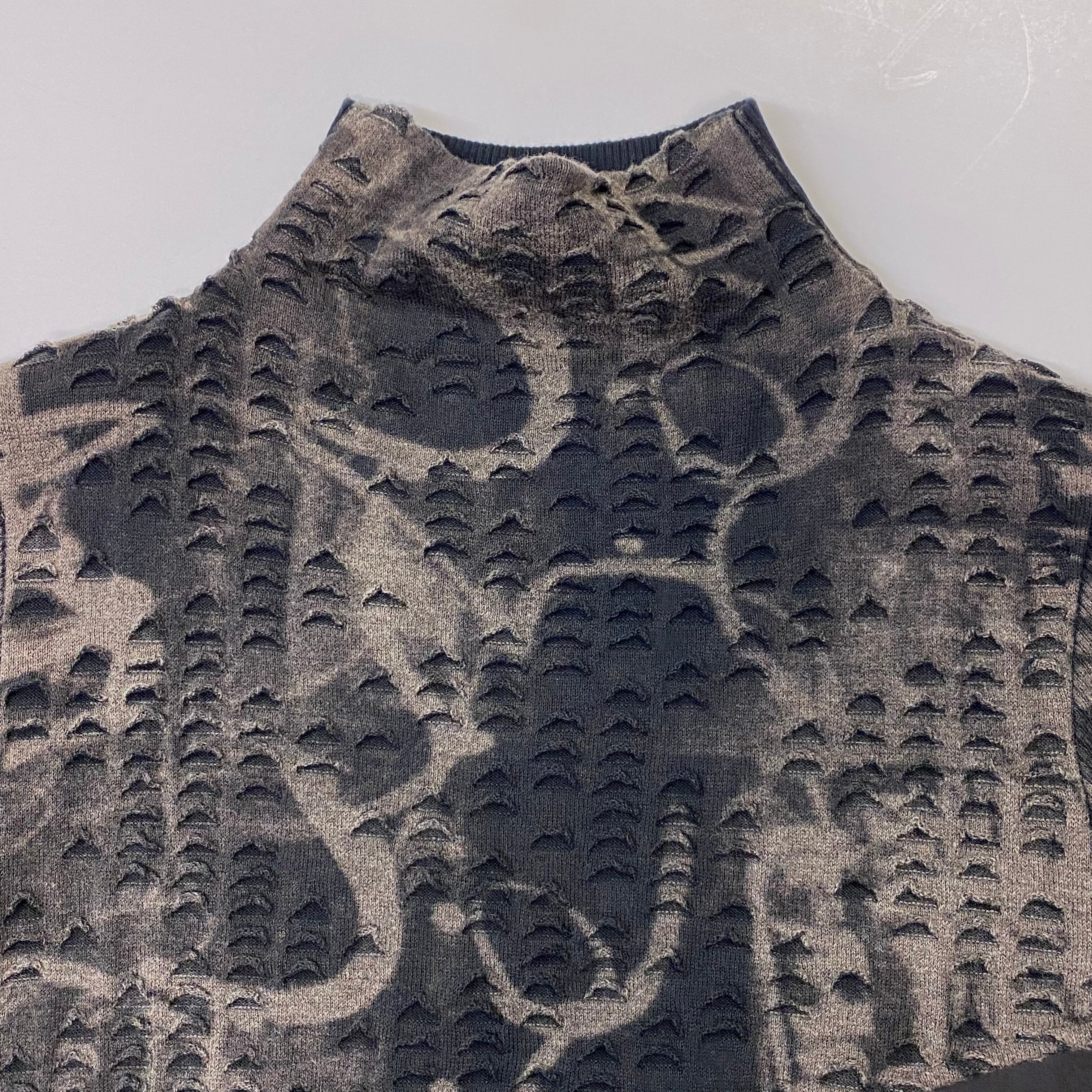 上身頃のニットは表面がめくれ上がり、裏のニット地が覗く特殊なジャガードニットになっています。