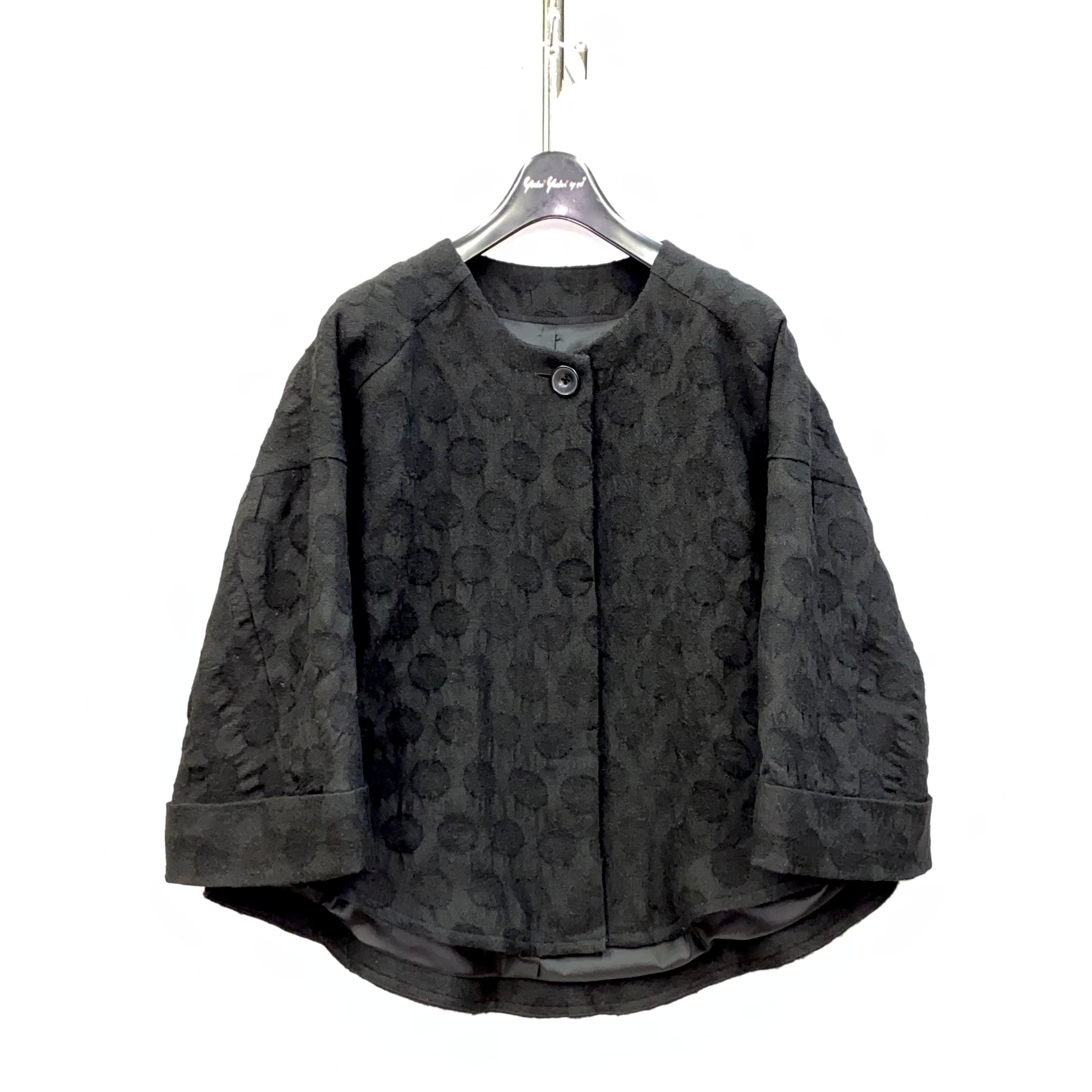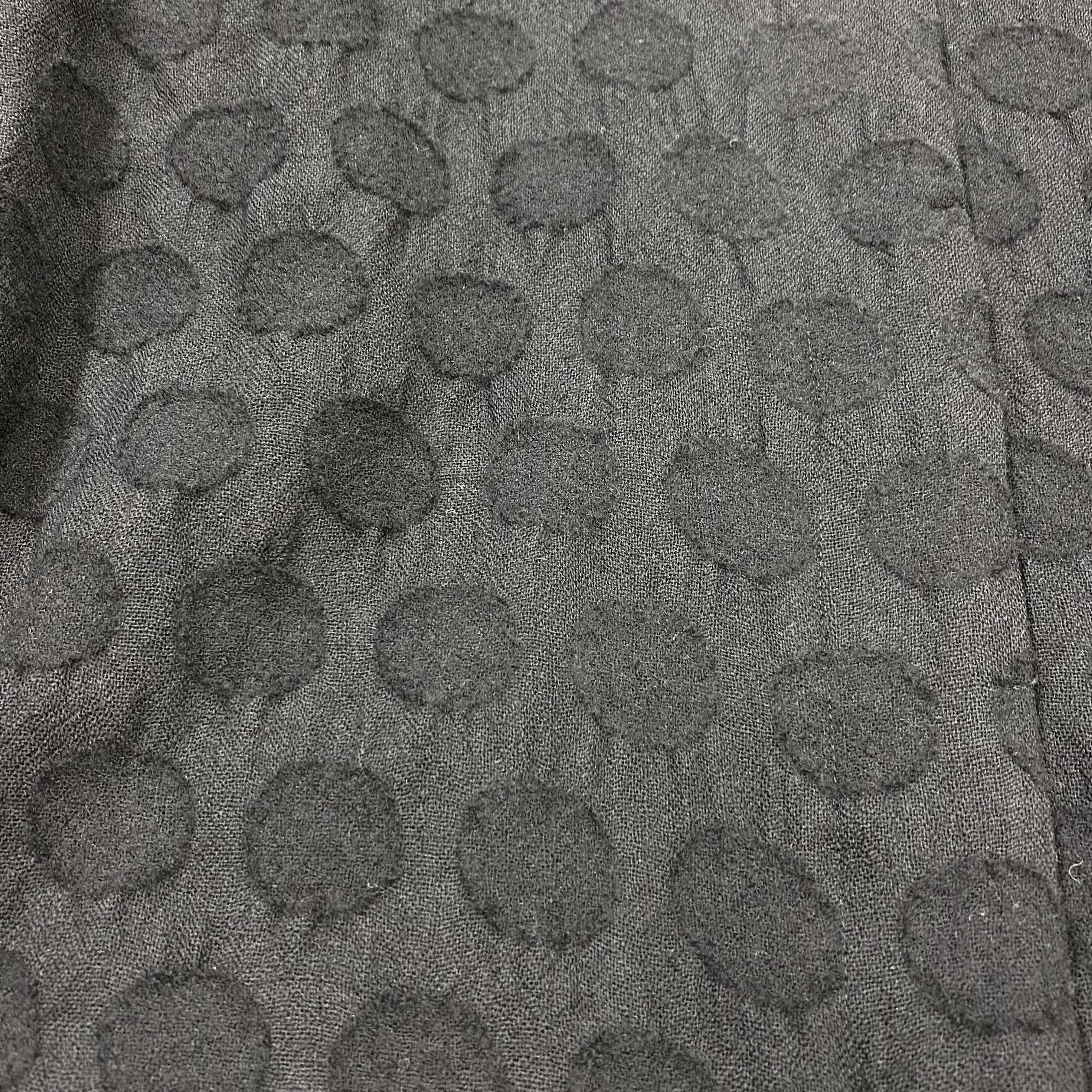 生地は毛100%のジャガード織りの一種で、ドットの丸の柄部分がダブルで厚くなっていて、ベースのシングル部分は軽く繊細な織り。グレード感のある雰囲気です。