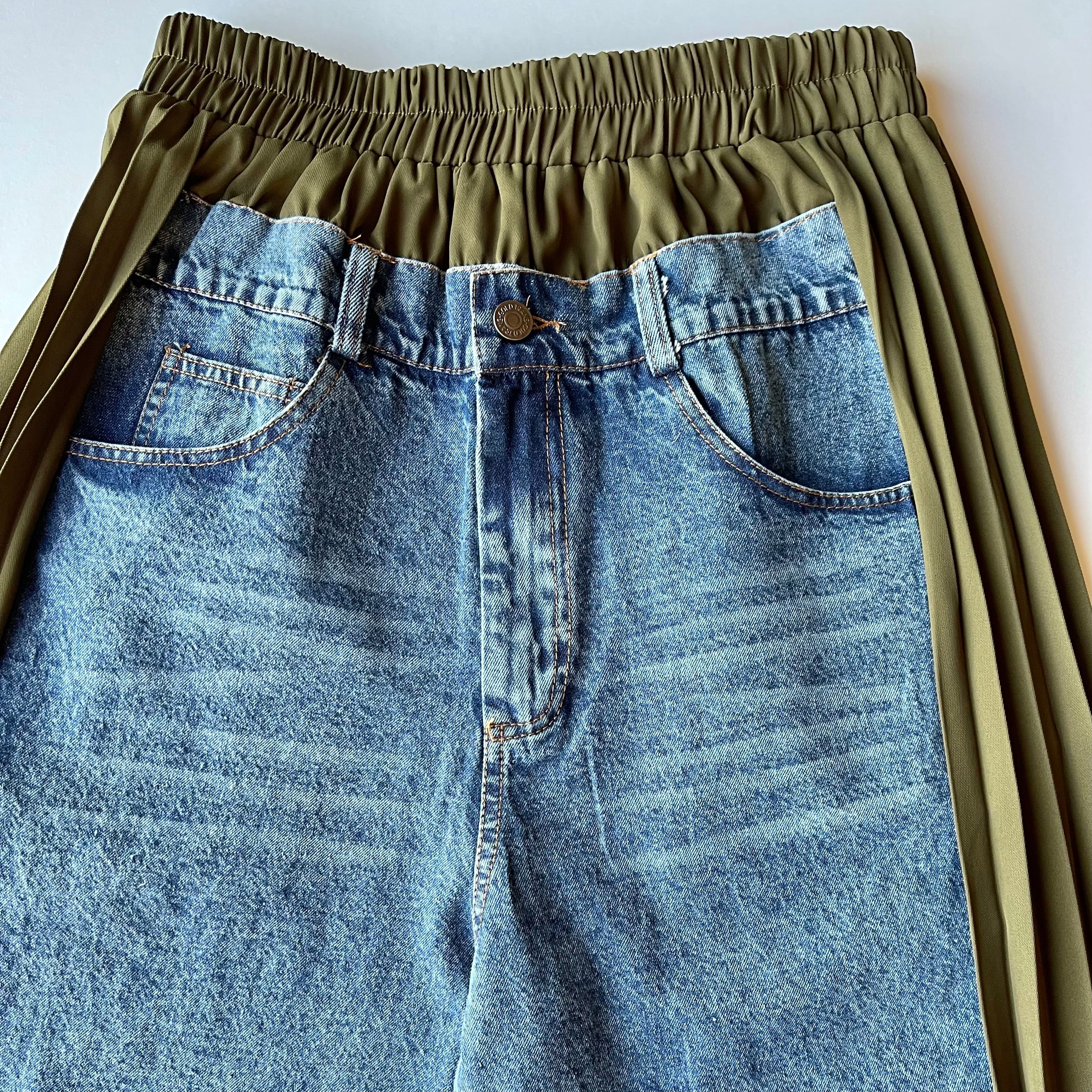●デニム×プリーツデザインでおしゃれパンツ♪