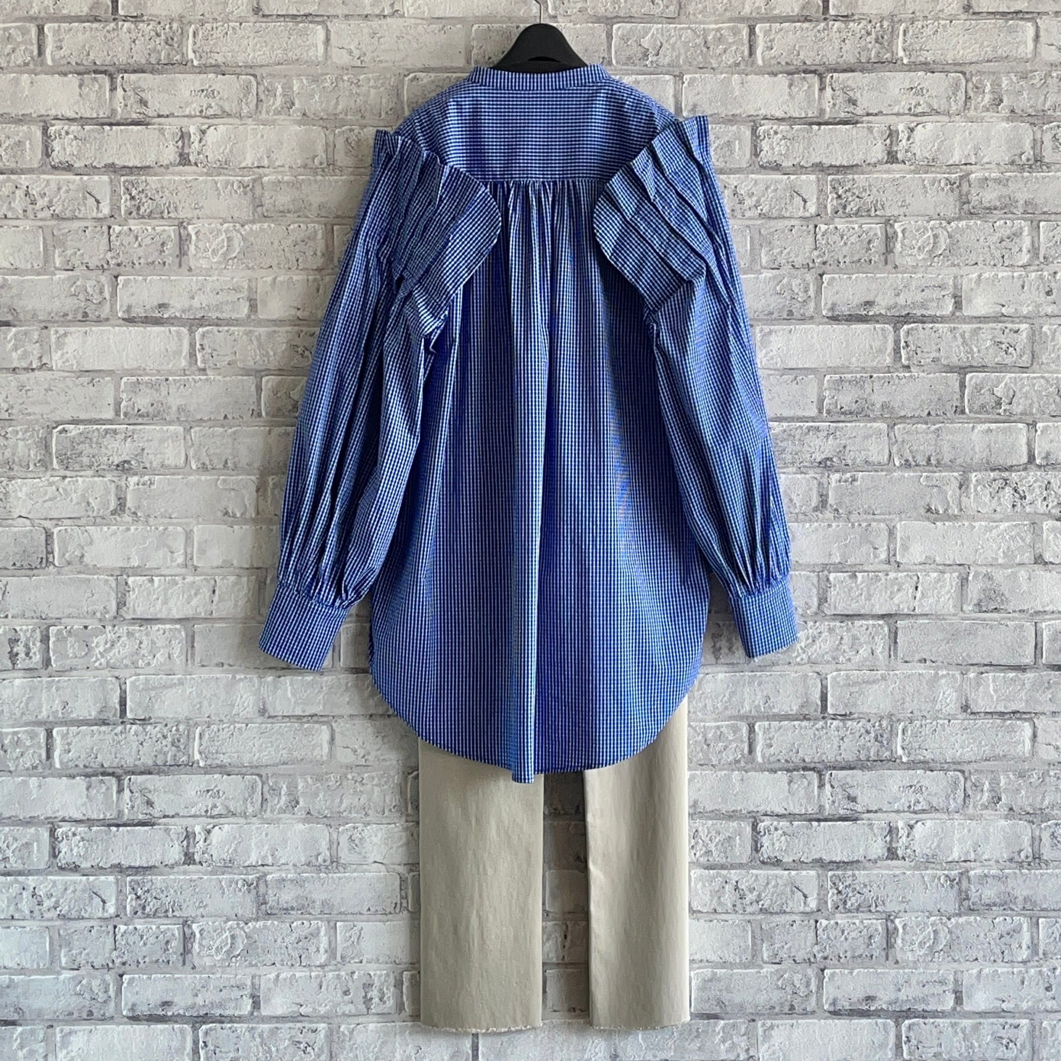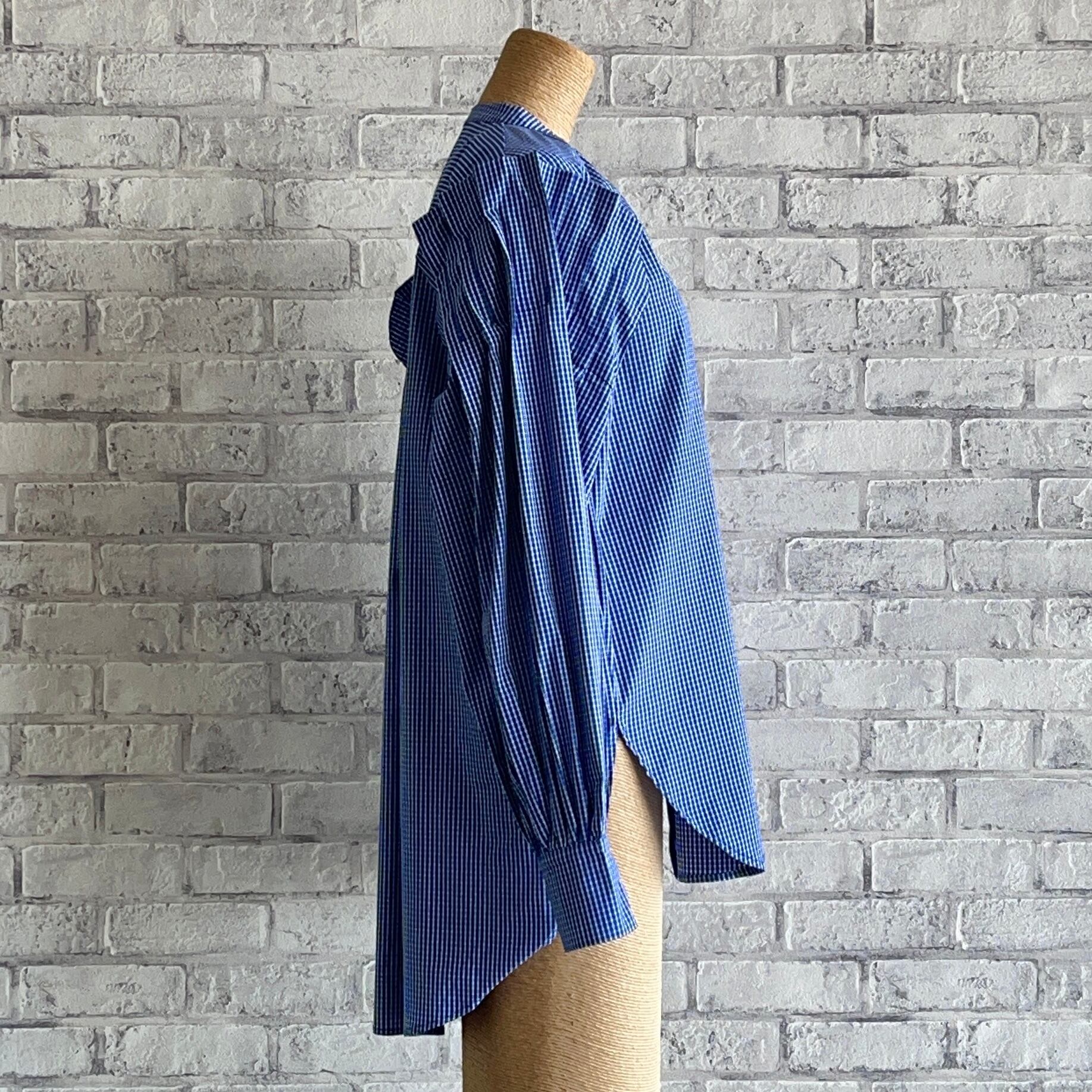 タック ボリュームスリーブ シャツ ブルー グラフチェック/Bell Pony ベルポニー 送料無料