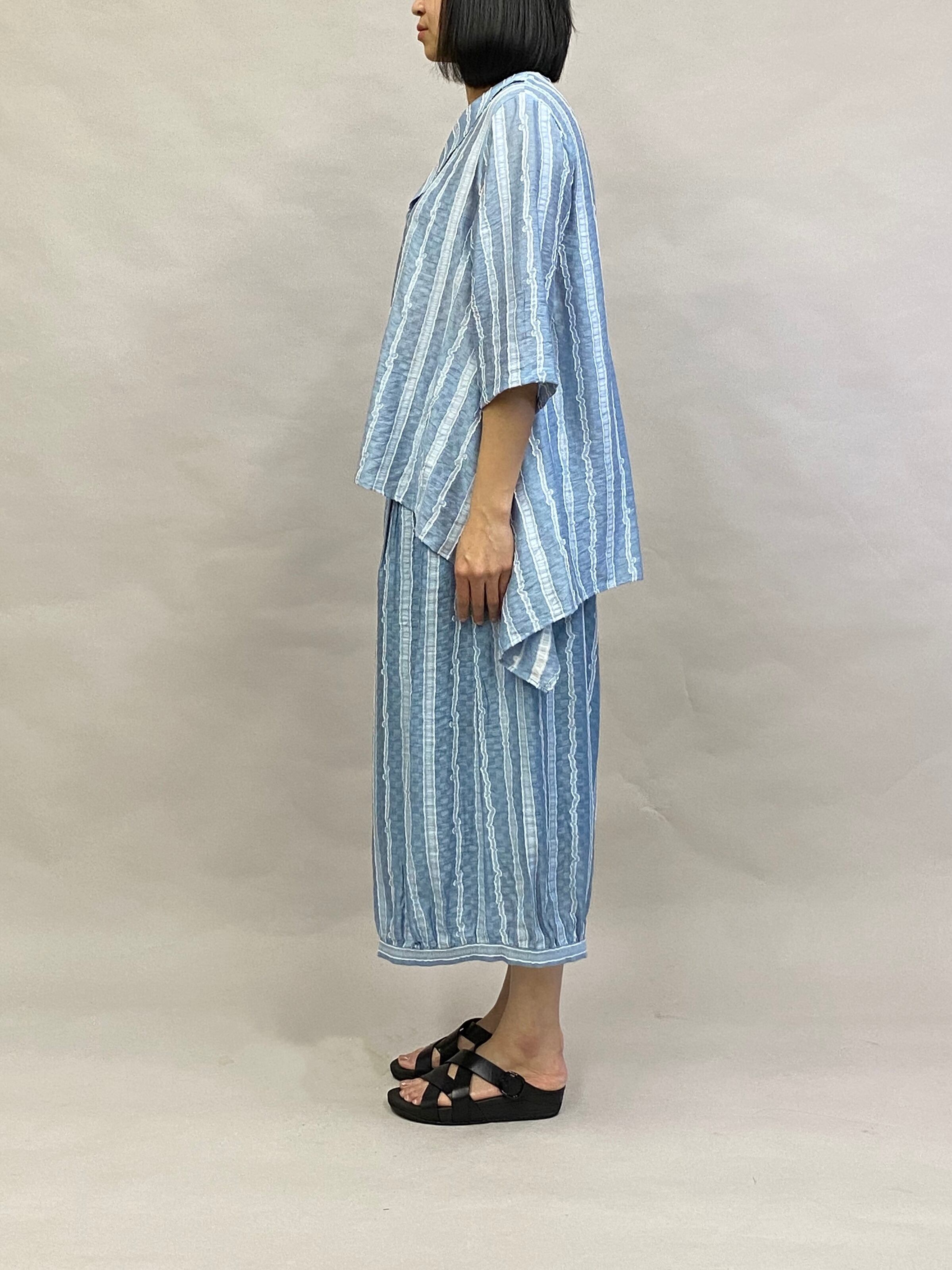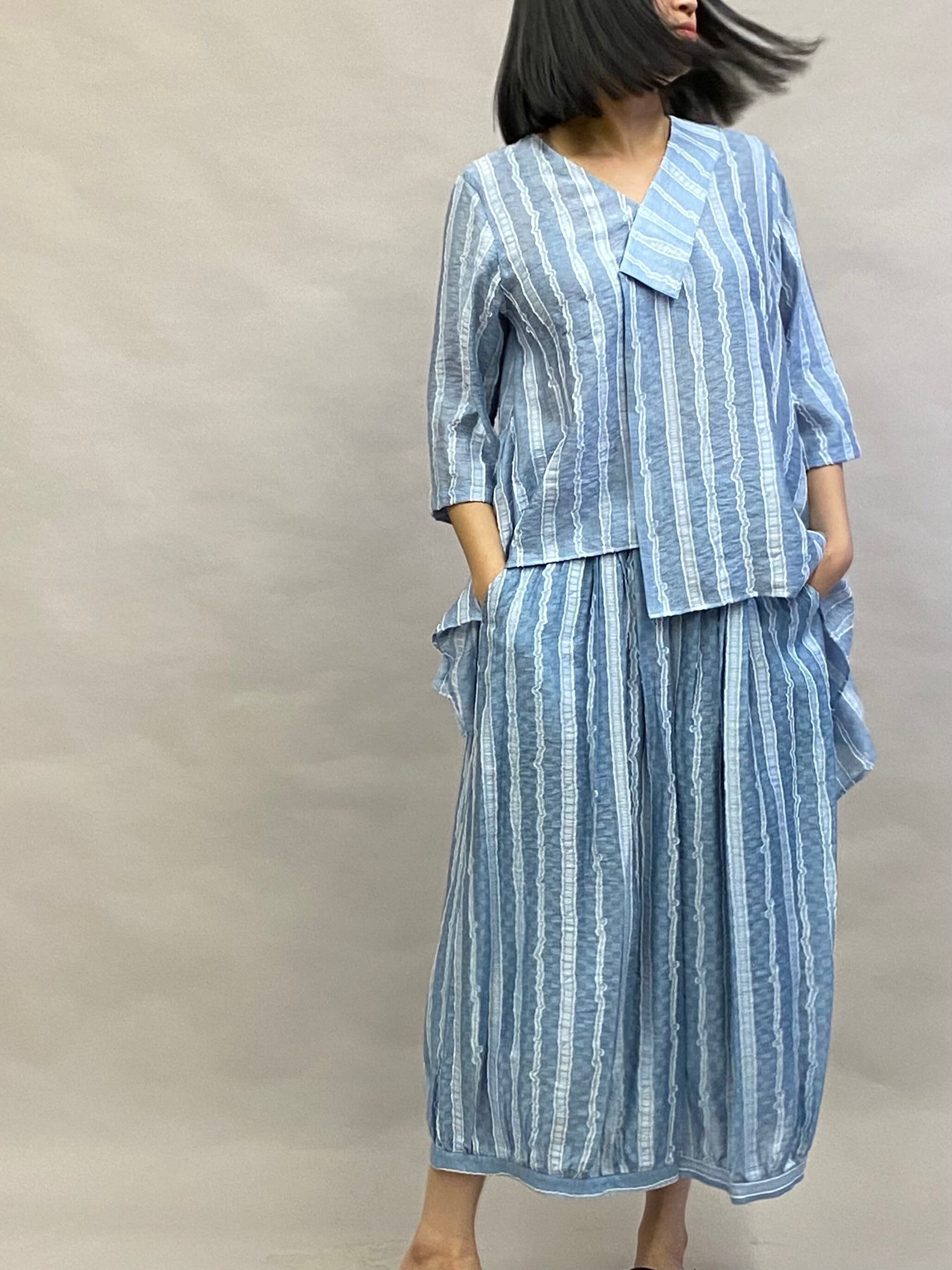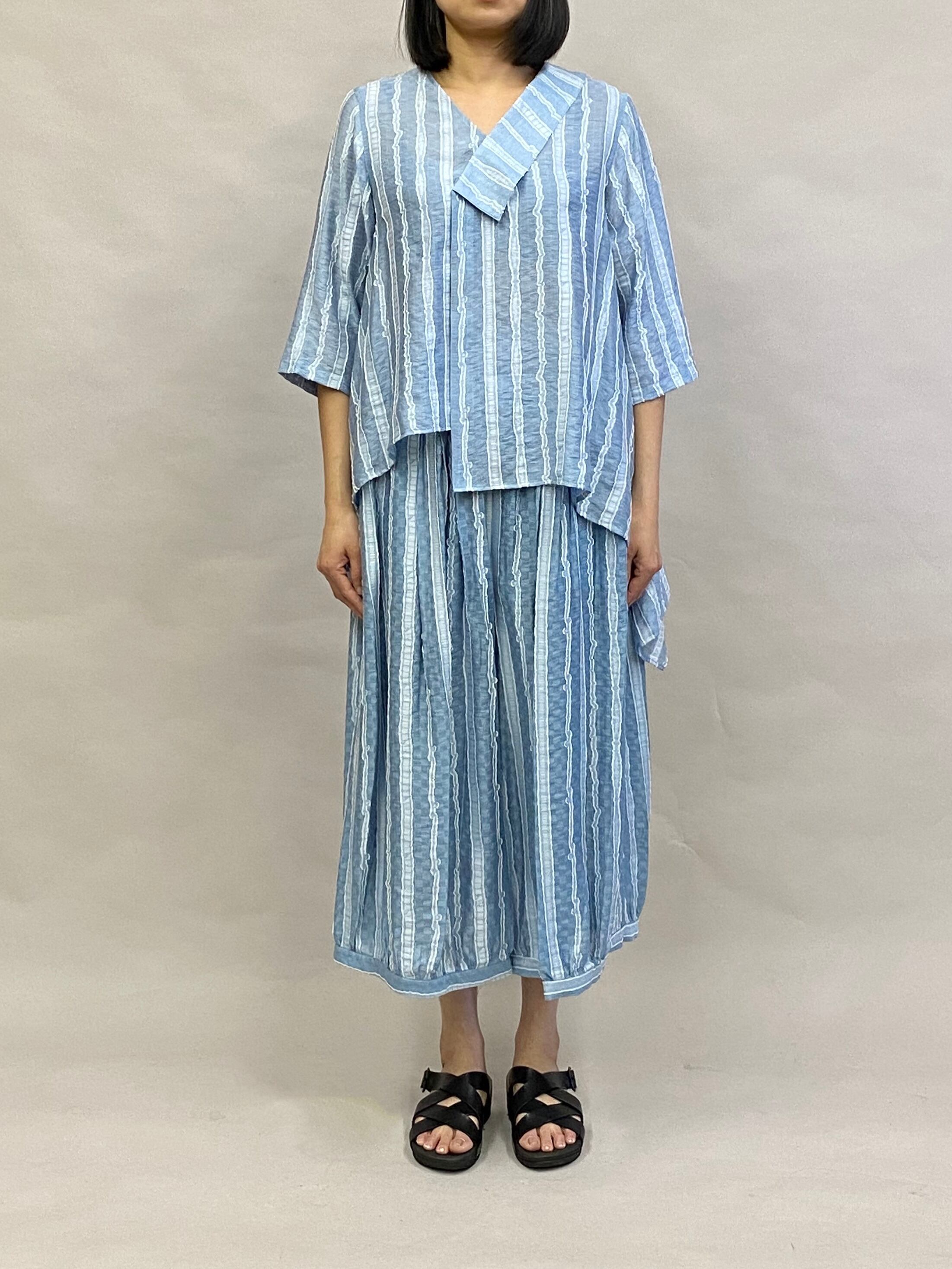 袖もヒジ下までの袖丈で腕があらわにならず、涼やかさと気負わなさを両立します。