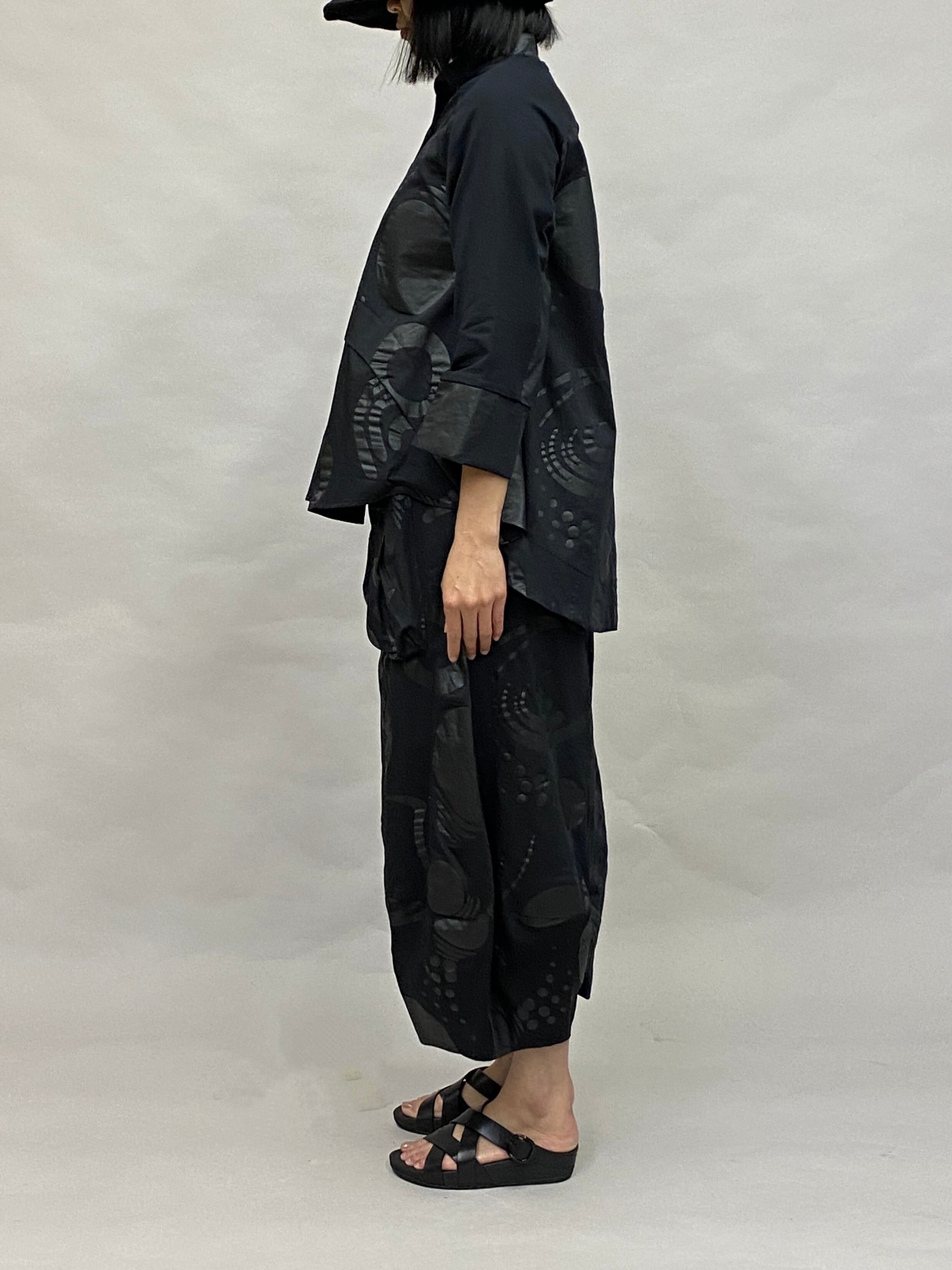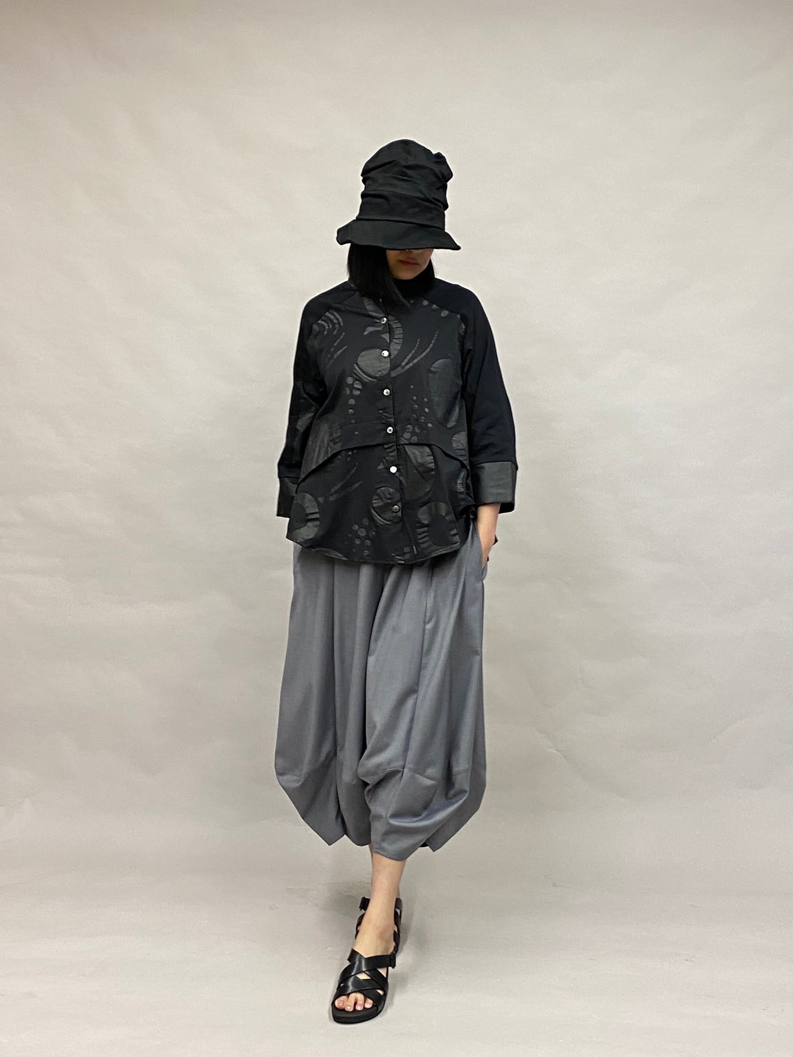 コットン プリント柄 ワイドフィット シャツ【ブラック】/ヨシヨシバイピージェイ