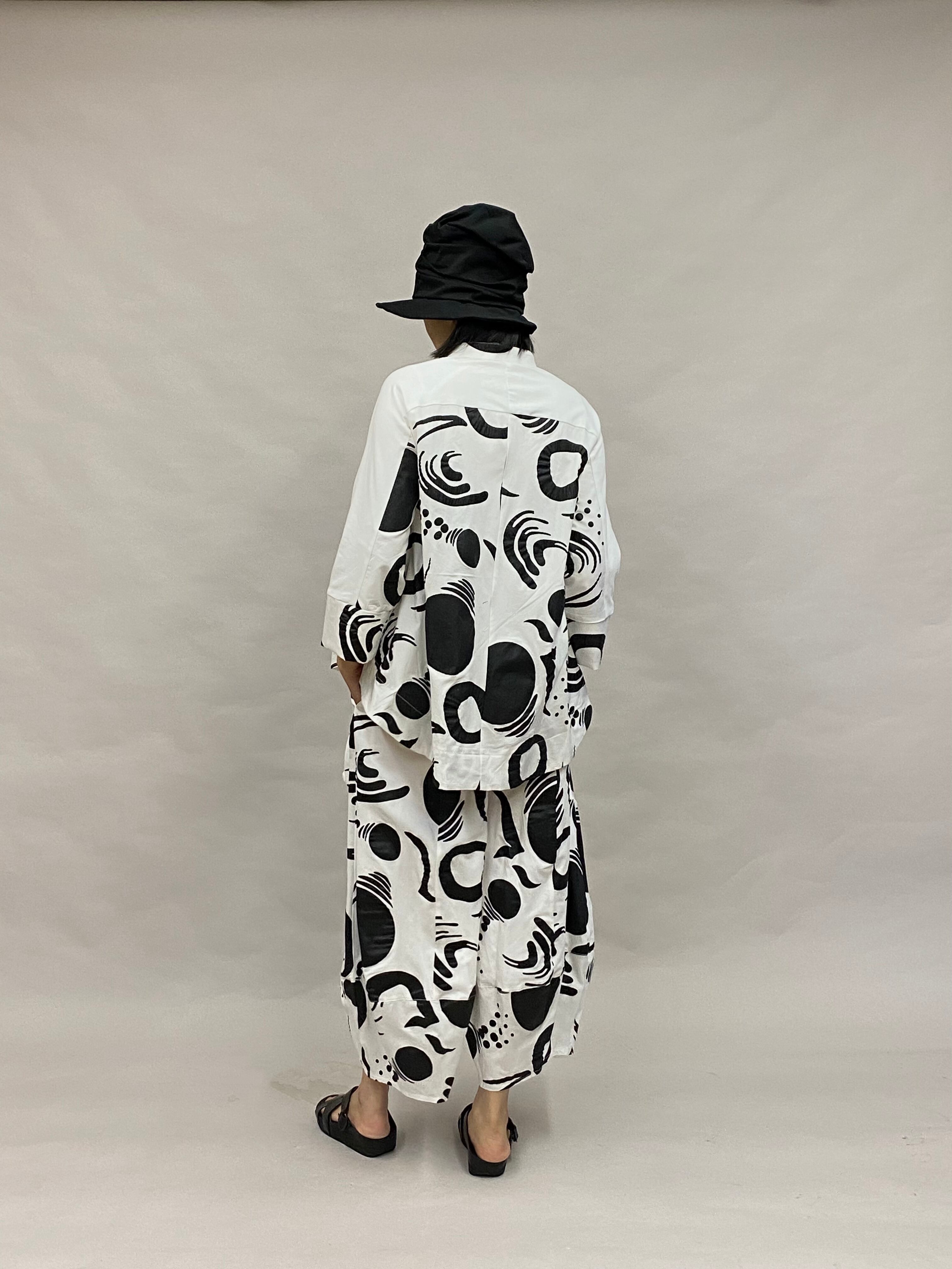 コットン プリント柄 ワイドフィット シャツ【ホワイト】