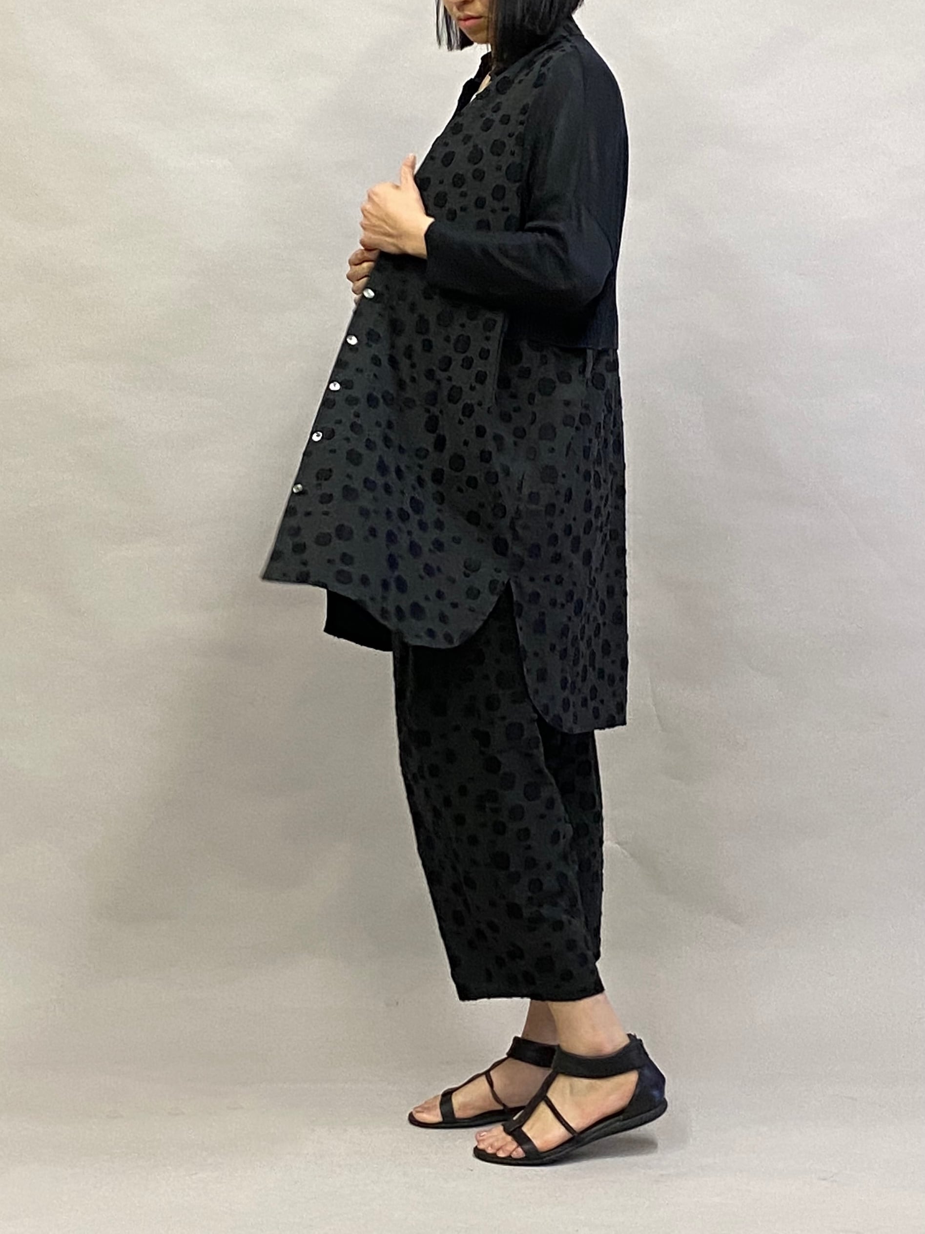 ドット柄 インバーテッドタック テーパードパンツ【ブラック】/ヨシヨシバイピージェイ