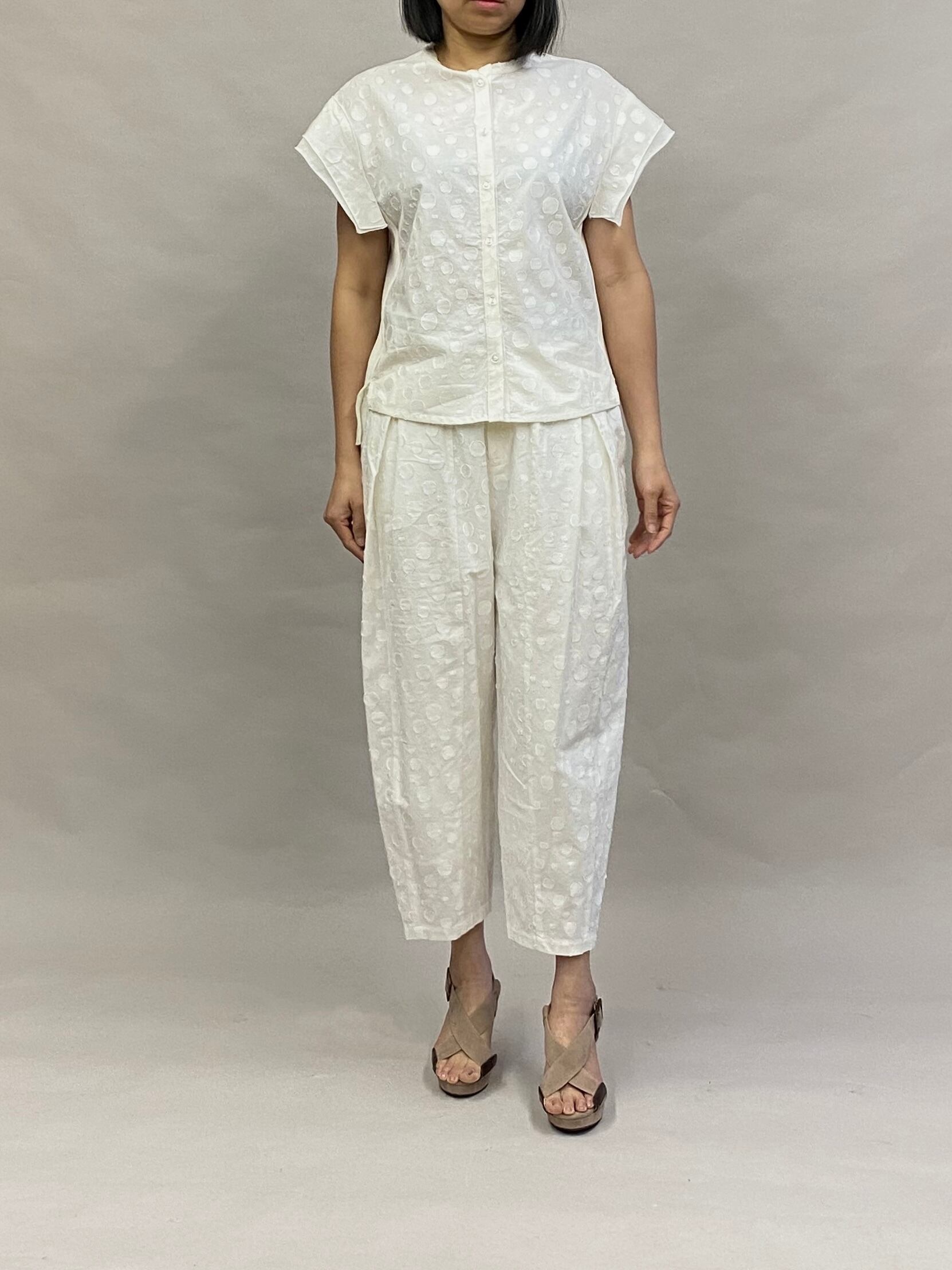 ドット柄 インバーテッドタック テーパードパンツ【ホワイト】