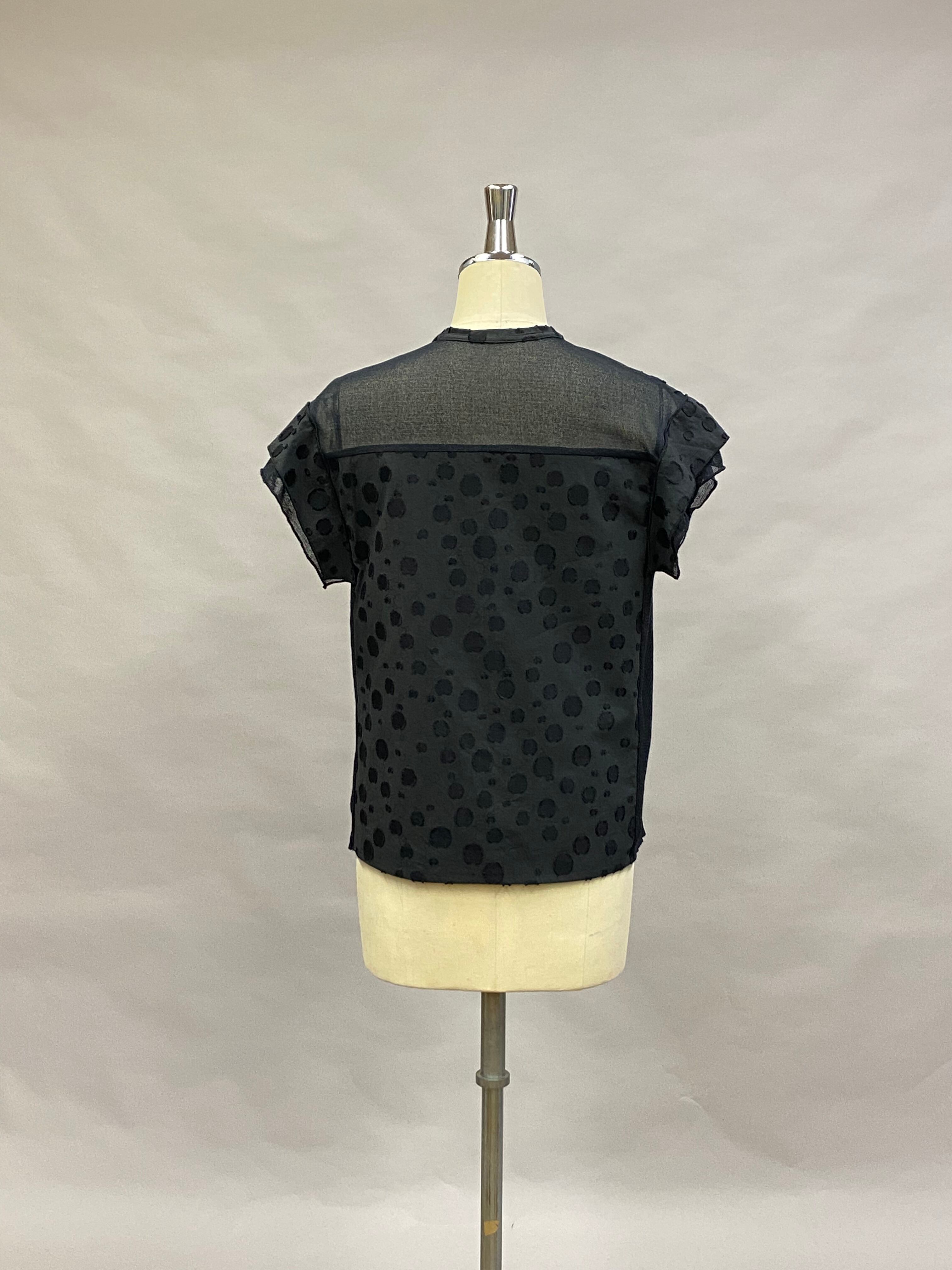 バンドカラー キャップスリーブ ブラウス【ブラック】/ヨシヨシバイピージェイ