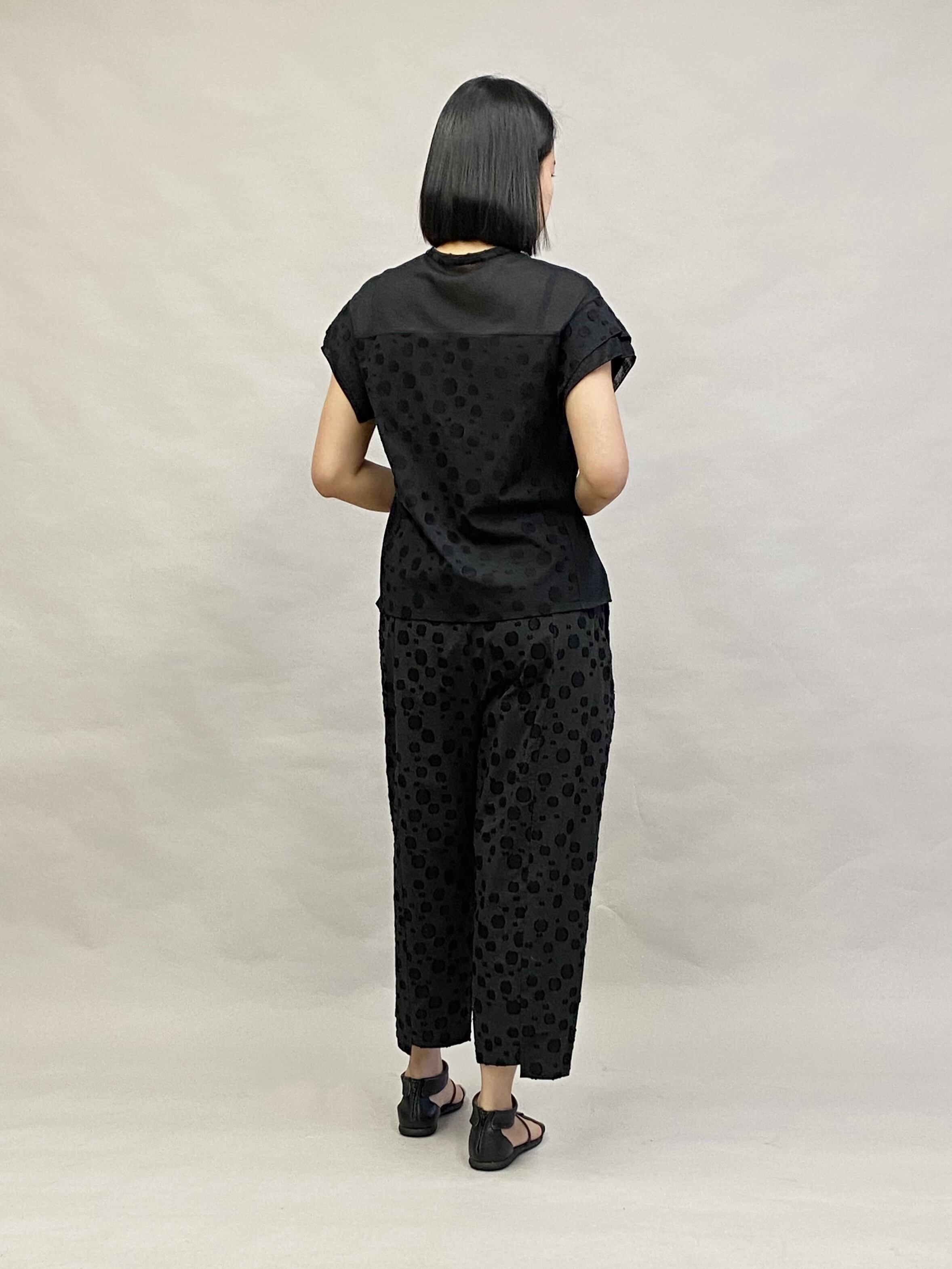 ドット柄 インバーテッドタック テーパードパンツ【ブラック】