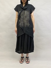 セルロース系のトロンとした印象とナイロンフィラメントの繊細さ、麻によるハリ感が合わさった緊張感と軽やかさが合いまった心地のいい生地。