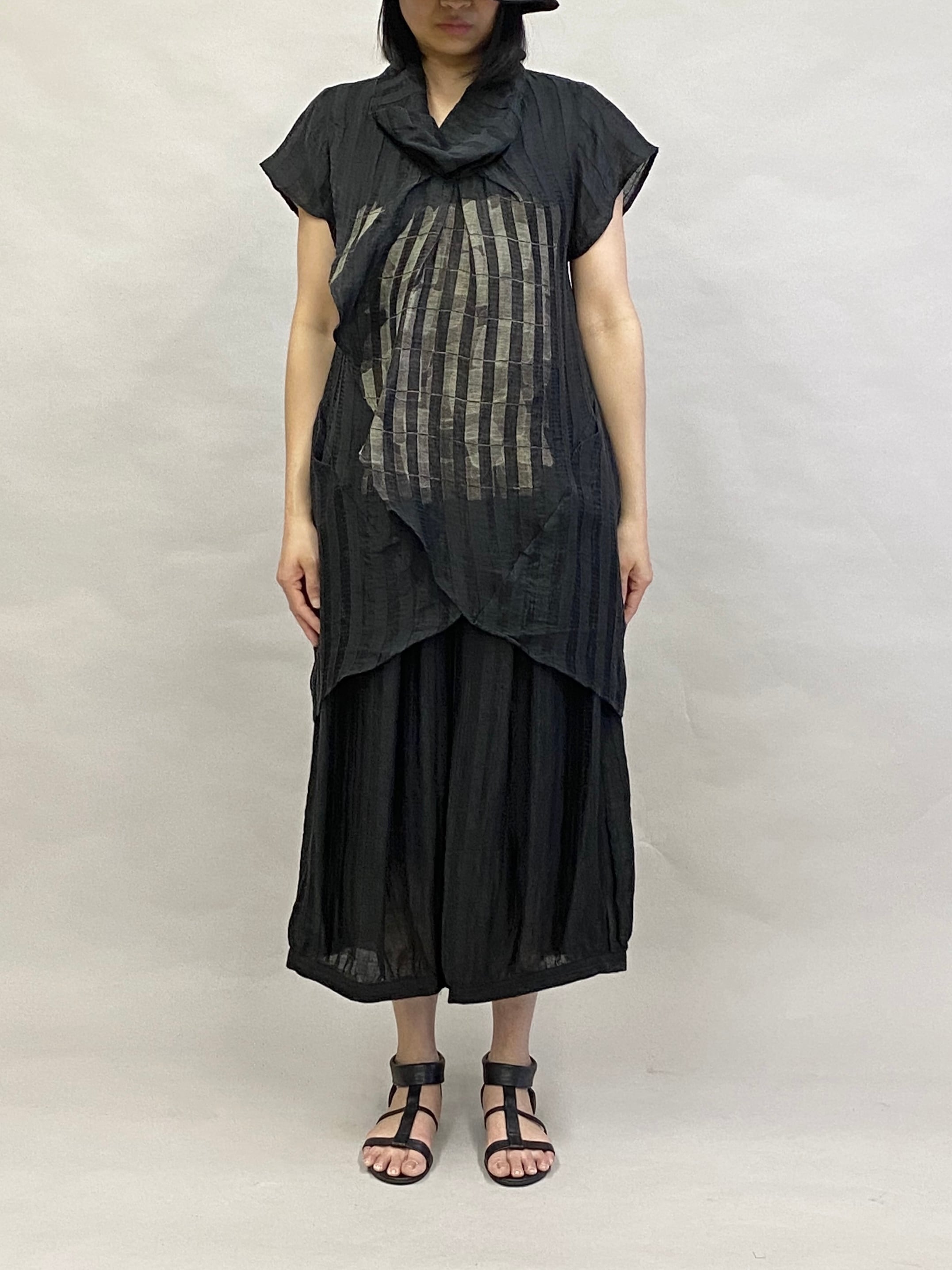 折り柄によりストライプのような、格子柄のような柄を表現した、表情のある生地を使用。