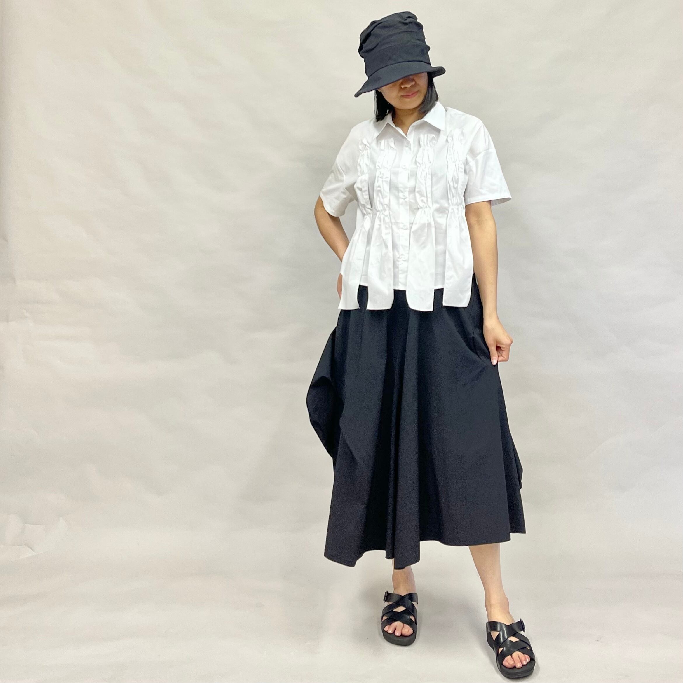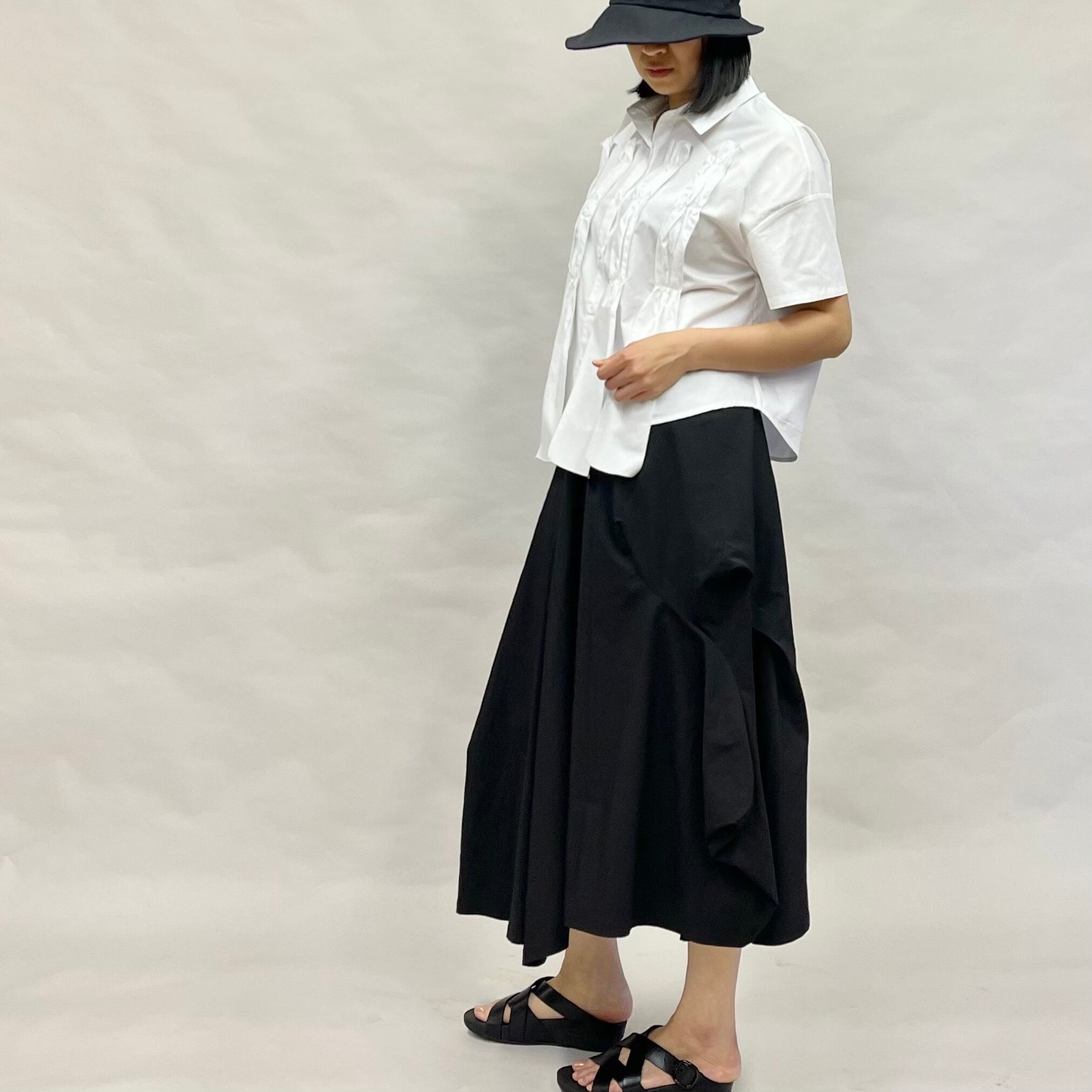 アシンメトリー キリカエ フレアスカート【ブラック】/ヨシヨシバイピージェイ
