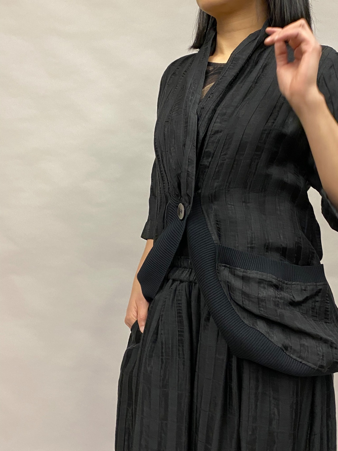 ショールカラー ニットドッキング 布帛カーディガン【ブラック】/ヨシヨシバイピージェイ