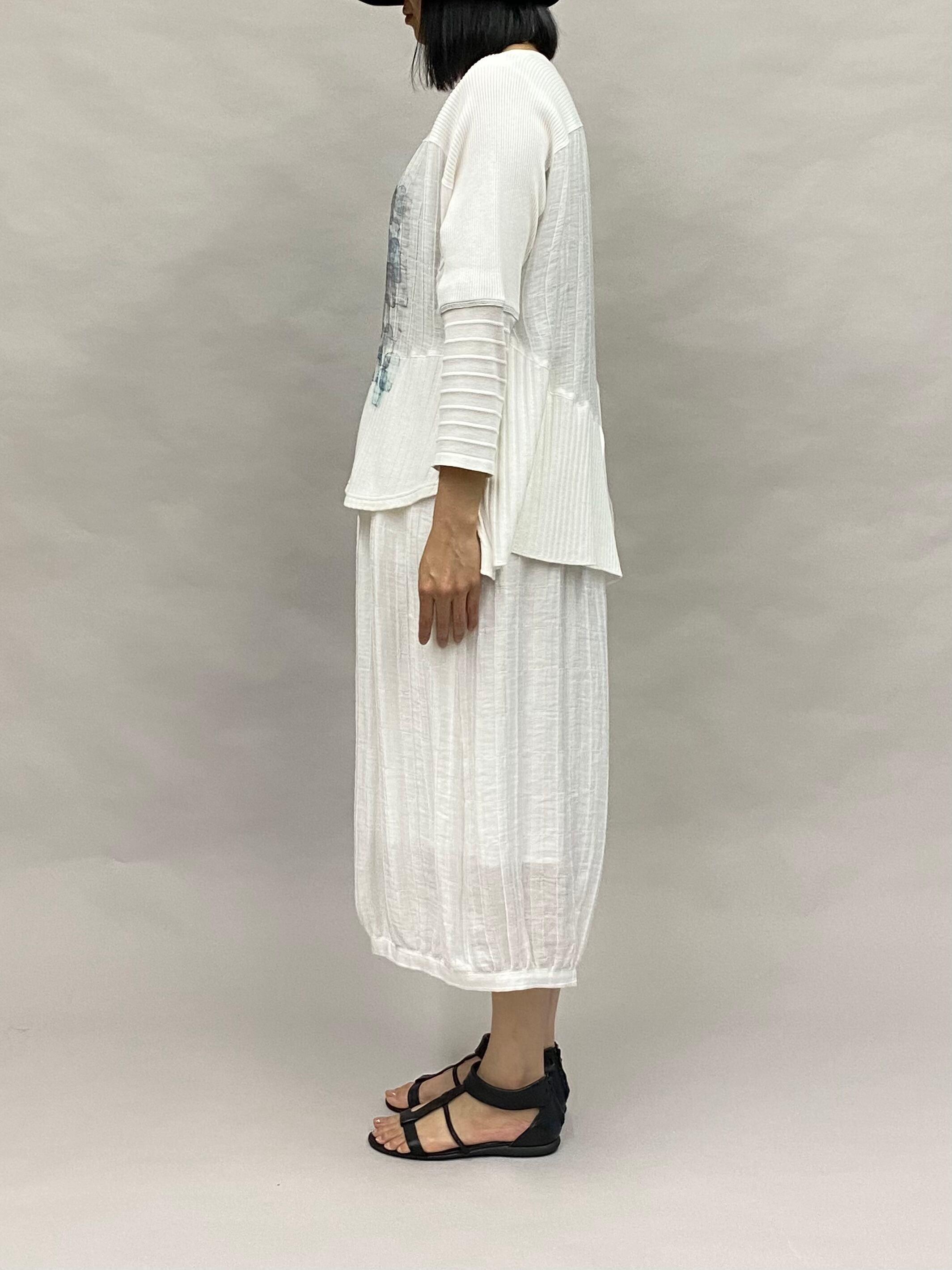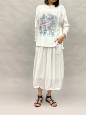 異素材コンビ プリント ドルマン ボートネック【ホワイト】/ヨシヨシバイピージェイ